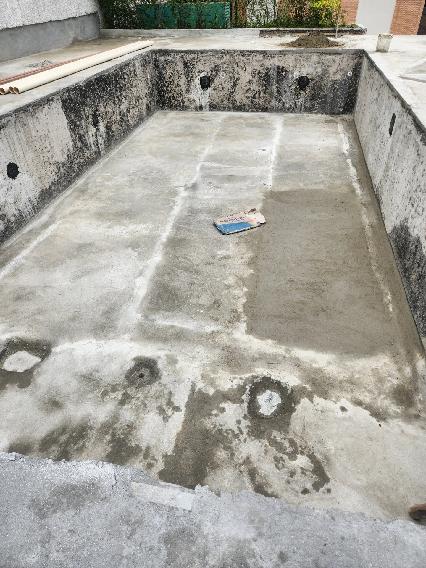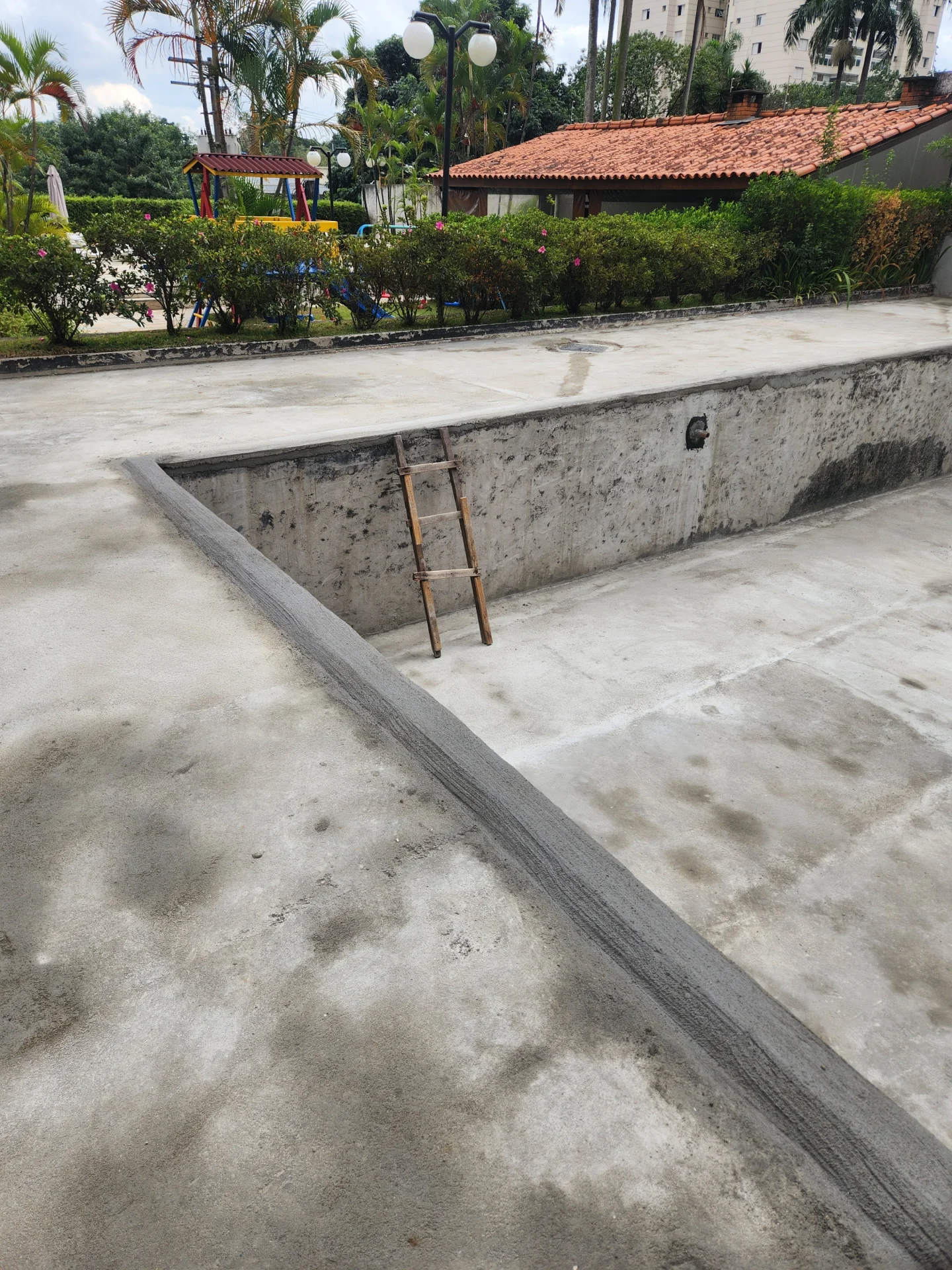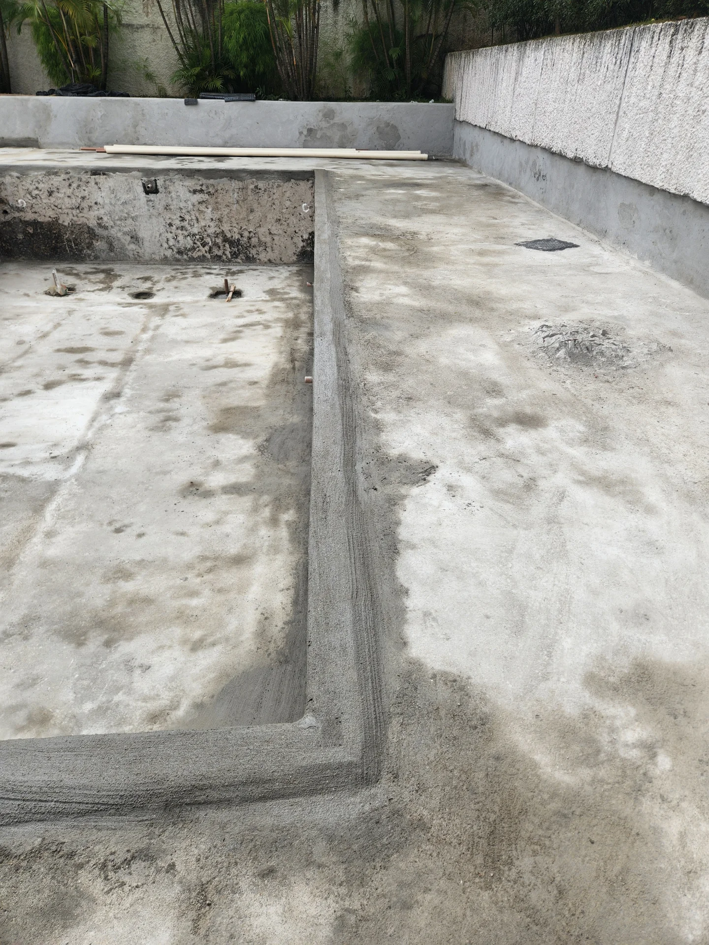 - Executado contra piso da piscina. Em fase de cura do contra piso.
