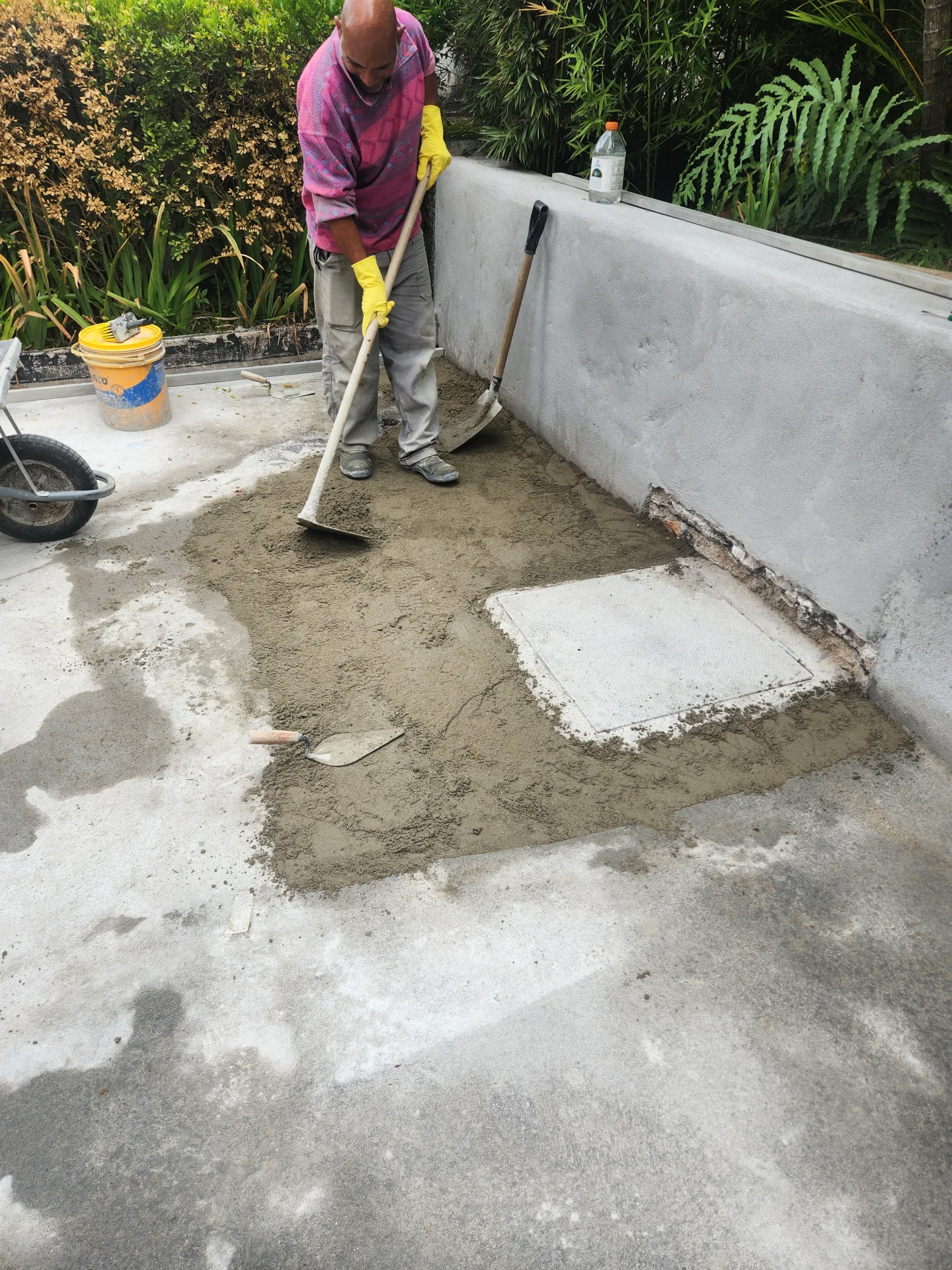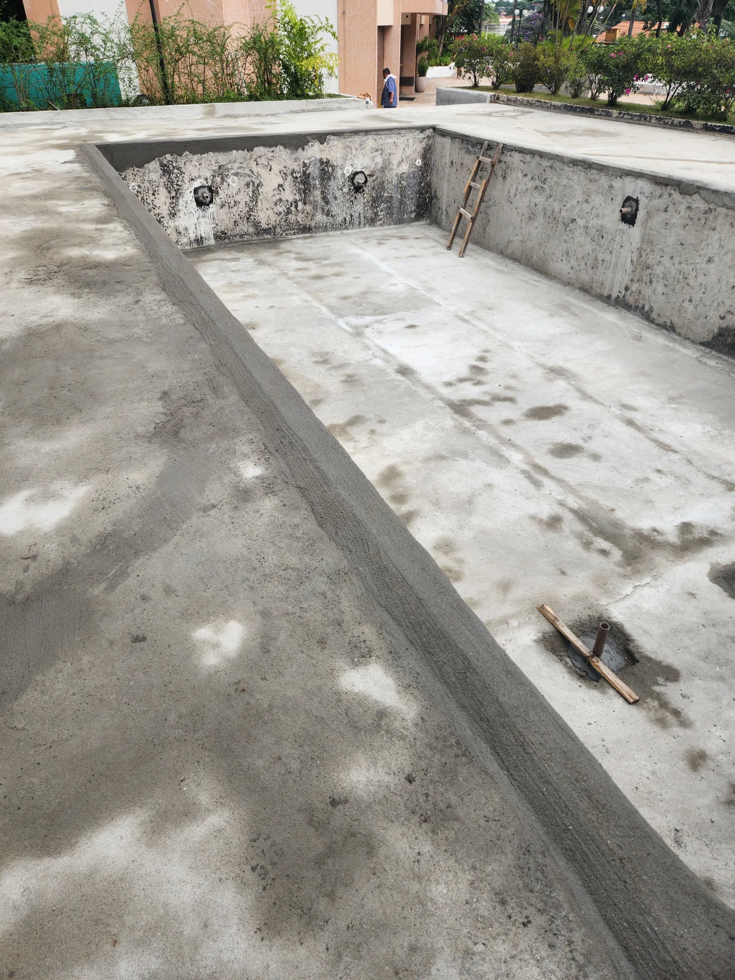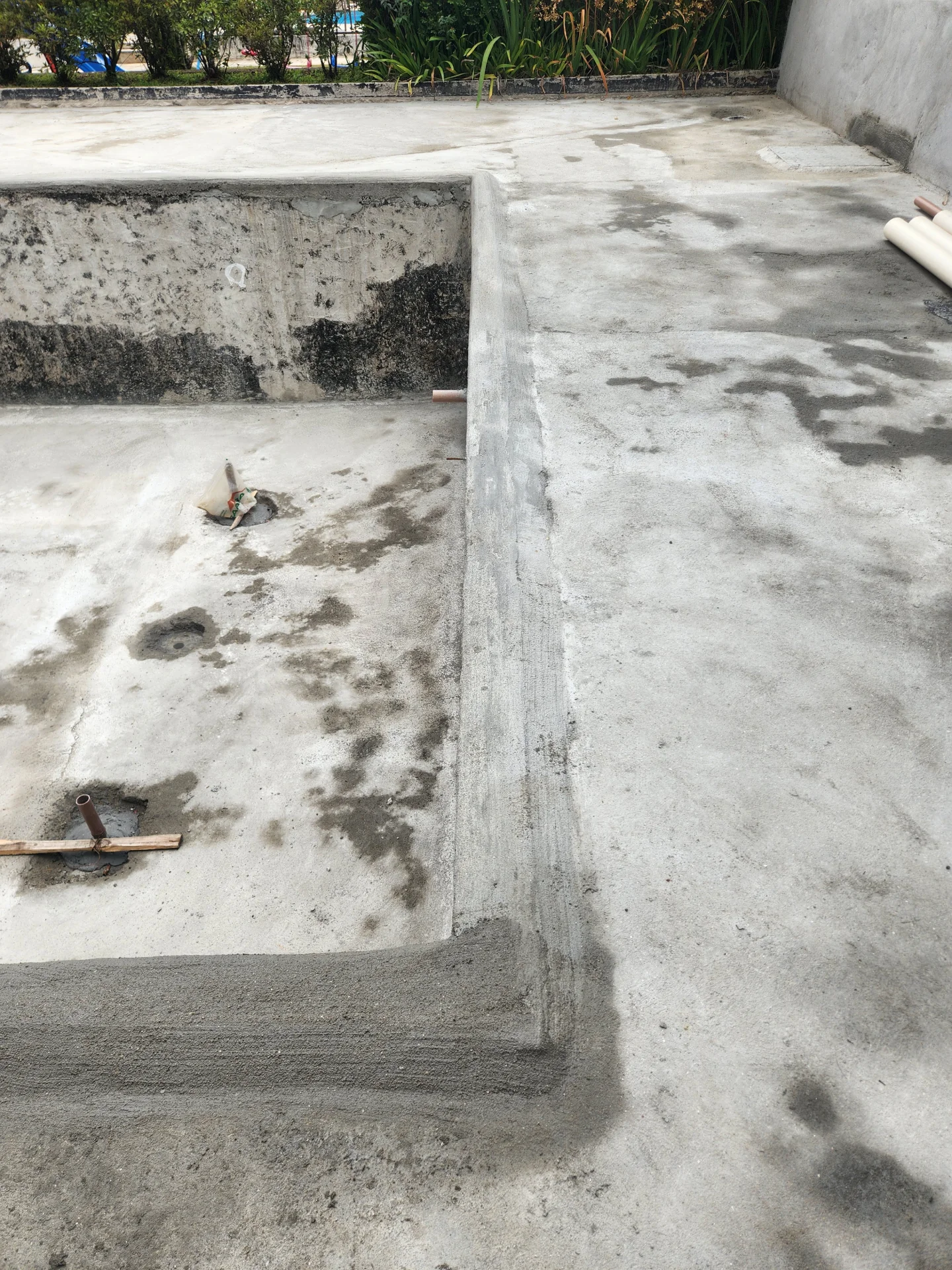 - Executado contra piso da piscina. Em fase de cura do contra piso.