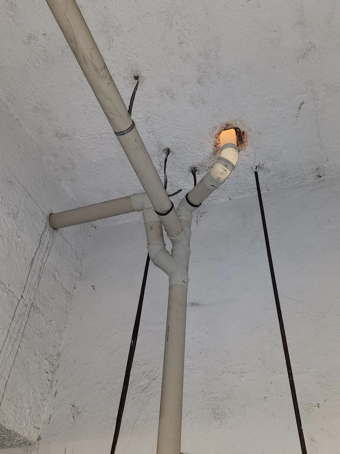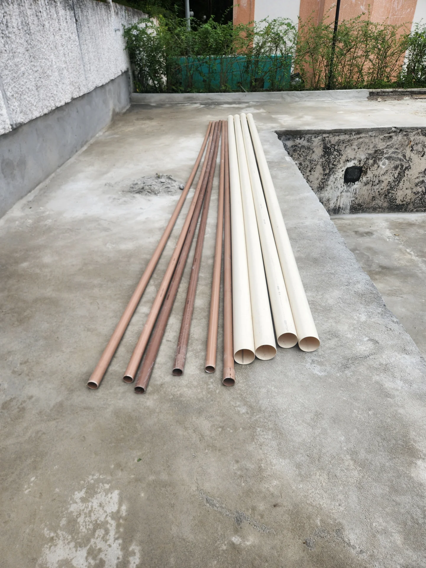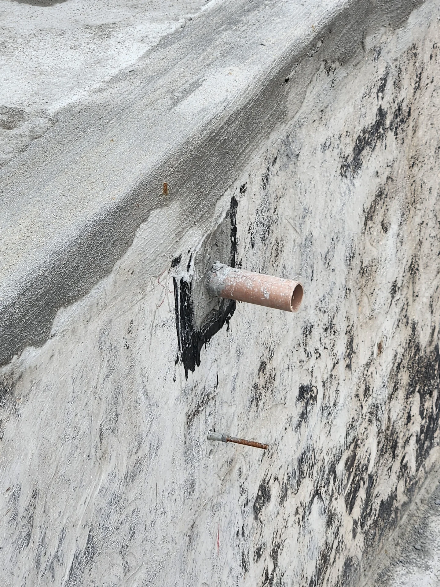 - Instalado os tubos passantes do sistema hidraulico da piscina no fundo (ralos) e nas paredes (bicos injetores, extravasador, bico de aspiração).